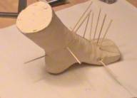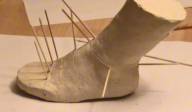 Ignoring the fact that the foot model is a foot and not a wooden last blank, we proceed to mark it at the fit points as if it were a wooden block. It is this step,that   sets this last making process apart from all other life casted foot model last making techniques.